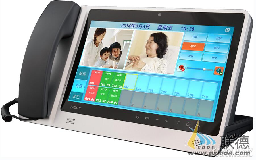 產品詳細介紹ICU探視對講主機功能特點: Ø 底座式,放置在護士站的桌面上即可; Ø 可設定為護士站主機和護士站副機;一套系統內最多可設定1臺護士主機和12臺護士站副機。 Ø 采用10.2寸數字真彩屏,linux操作系統,觸摸式操作,界面高檔美觀。 Ø 基于局域網,以TCP/IP協議傳輸視頻、音頻和控制信號,實現雙向可視對講。 Ø 須配合探訪分機和ICU分機使用。 Ø 高清可視對講,配送手持呼叫器,可手柄或免提通話,內置高靈敏度麥克風、高保真立體聲喇叭,并具有16K以上的聲音采樣率,使聲音更加逼真、宏亮。 Ø 最多可接30臺探訪分機和1000臺ICU分機。 Ø 有呼叫轉接功能,可為探訪分機轉接相應的ICU分機進行可視對講。 Ø 有監聽監視功能,當病人家屬與病人之間進行通話時,可對其監聽監視。 Ø 可設定分機的通話時間(10分鐘、30分鐘、60分鐘可選)。 Ø 有通話計時功能:可顯示探訪分機與ICU分機的通話時間,以便護士查看。 Ø 有強行切斷通話功能,根據病人的情況控制通話時間。 Ø 可呼叫病床及對講。 Ø 可外接耳麥。 Ø 采用低照度CMOS彩色攝像頭。 Ø 安裝簡捷,用RJ45標準網線,插入網絡交換機任一端口即可工作。