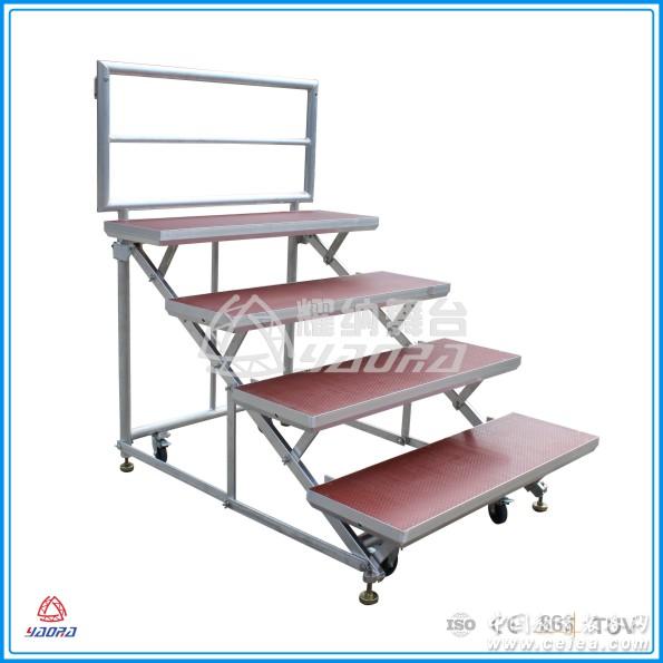 鋁合金折疊合唱臺: 鋁合金作為主材,輕巧緊固,安全性強。學(xué)校、合唱團專用合唱臺,堅固耐用,不用組裝。適用于禮堂,劇院的合唱表演,學(xué)校、黨政機關(guān),大小中型企業(yè)組織的合唱表演。室內(nèi)室外的團體畢業(yè)合影、歌唱比賽、合唱團的一些表演,可選擇鐵質(zhì),鋁合金,實木等材料。 產(chǎn)品優(yōu)勢: ① 完全折疊帶輪,收放工作一個人可以全部完成 ② 臺階后背帶護欄,更有安全感。面板與支架不分開,層與層分開。運輸和存放較占空間 ③ 可以任意組合成各種形狀的唱臺 ④ 移動時無需搬運 ⑤ 鋁合金材質(zhì)非常輕便,耐用堅固不生銹 產(chǎn)品參數(shù): 尺寸:單組長1.22米,寬度0.3米-0.3米-0.4米,每層落差0.3米。可帶護欄,帶扶手。護欄高度0.8米,木板厚度3厘米左右。 折疊后尺寸,長2.6米,寬0.29米。一般可做2-4層。 每個平臺之間高度為25cm,整組寬度122cm. 面板:18mm厚防滑板,有黑色和紅色。 產(chǎn)品工藝細(xì)節(jié): 鋁合金作為主材,每層平臺采用高強度防滑板輕巧緊固,安全性強。 鋁合金階梯框架的材質(zhì)非常輕便,有耐用、堅固、不生銹等優(yōu)點。 |
