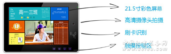 A區域:展示時間、天氣、溫度、網絡情況,信息實時更新的。 B區域:展示集體照片、個人板報等、調查問卷、趣味知識等,可輪換播放, 播放規則易學易用。 C區域:展示學校的通知通告(手動下發)或課程調整(自動下發)等信息。 D區域:展示優秀班級、優秀標兵等。 E區域:展示上課出勤數據,及當時課節的時間、教師信息。 F區域:班級名稱。 G區域:展示班級班主任照片及相關信息。 H區域:展示當日課程安排。 三、系統優勢 1.綜合性 耀隆智慧班牌系統綜合了師生上課考勤管理和多媒體展播管理,比單一的電子班牌增加了師生上課考勤管理功能,比單一的考勤系統增加了多媒體展播管理功能,綜合性更強。 2.交互性 耀隆智慧班牌不僅展示班級、校園圖片,宣揚校園文化,增強學生的集體榮譽感,而且通過調查問卷、趣味知識展示、個人及班級榮譽等功能項,增加了學生對校園生活的參與感,精美的人機界面、良好的人機交互體驗成為耀隆智慧班牌的一大優勢。 3.可擴展性 耀隆智慧班牌系統可直接形成標準一卡通平臺,結合多媒體教室管理系統、宿舍進出管理系統、考試考場管理系統、會議簽到管理系統、車輛門禁管理系統等多種應用系統,實現真正意義上的校園一卡通平臺。 4.先進性 應用先進的身份識別技術:射頻卡識別、手機卡識別;卡識別確保學生方便快捷完成識別任務;先進的多媒體展播技術:21.5寸大屏顯示,文字、圖片、音頻的展播及自定義。 5.統一性 實現檔案資料的一卡通:包括學生、教師、管理人員的檔案信息,行政班的組織結構等信息。這些信息可作為公用信息,提供給學校管理人員使用。