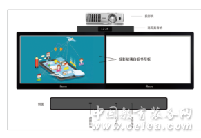 一、 產品構成: “平板多媒體交互一體機”由觸摸式短焦投影玻璃幕板、書寫白板、短焦投影機、外置高保真音箱、內置OPS電腦主機、IC卡取電、內置式光學展臺所構成。