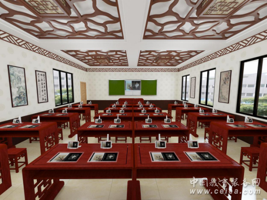 教具:投影書法臨摹桌: 一款專門用于書法臨摹的練習(xí)工具,它就像書法營養(yǎng)的采集器,是您身邊的書法老師。投影書法臨摹桌,整體采用北榆木實(shí)木框架,硬度與強(qiáng)度適中,結(jié)實(shí)牢固,可長久保存。古典的設(shè)計風(fēng)格,文理通達(dá)清晰,花紋漂亮,色澤美觀大方。 數(shù)字書法臨摹桌:采用優(yōu)質(zhì)的北榆木做為原材料,經(jīng)專家的精心設(shè)計,糅合了傳統(tǒng)的明清工藝。桌子整體采用烤漆工藝,最大程度的保持了原色紋理。桌面平整厚重,1400mm*650mm*750mm的尺寸契合了人體工學(xué)原理,為學(xué)生提供了充足的書寫空間;圓弧式的無棱化設(shè)計,使桌子的線條更加流暢自然,人性化的桌斗使桌子的儲物功能更加貼心,雙人位的結(jié)構(gòu)使空間的利用最大化;側(cè)面采用鏤空雕花處理,典雅大方。整體榫卯結(jié)構(gòu)使桌子變得更加沉穩(wěn)和不易變形,臨桌寫字,淡雅舒適,厚重古樸的氛圍如置身古代,身臨其境。 桌面嵌入兩個18.5寸液晶臨摹區(qū),低壓暗線集成的設(shè)計使教學(xué)環(huán)境更加安全,液晶臨摹區(qū)由教師端主機(jī)控制,可同步播放教學(xué)內(nèi)容,左半部可顯示范字示范視頻也可切換成原字,右半部分為高清電子字帖,可根據(jù)情況自由調(diào)整字體大小和網(wǎng)格格式,具備臨摹結(jié)合和范字精確對比的功能。
