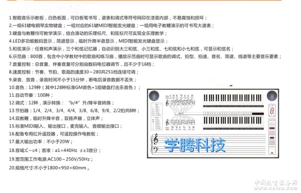 產品詳細介紹帶鍵盤白色板面的音樂示教板,外觀美,功能強,譜號在漆面內部,整板可書寫,擦拭不留痕,多項技術參數和性能均領先全國,質量和性價比遠超同類產品,是招投標項目的控標利器。其功能更強大,性能更穩定,多項技術為國內獨創,且內置示范曲多達800首,包含人教版中小學音樂課本中的所有歌曲和練習曲,另外還有增加了一些廣為流傳的經典中外名曲。本公司的五線譜電教板采用全新的設計理念,先進的SMT自動貼片焊接工藝。是目前市場上同類產品中質量最穩定、功能最齊全、性價比最高、竟爭力最強、維修最方便、市場占有率最大的產品。 |