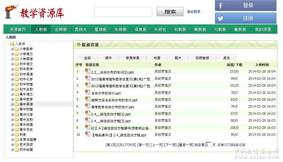 產品詳細介紹華鈞中小學教學資源庫系統是遵從教育部有關教學資源建設的規范,按照國家最新頒布的新課程標準與教學大綱,由多位專業多媒體設計人員開發制作的多媒體教學資源系統,由資源庫管理平臺及資源庫網站組成,資源包括多個教材版本的中小學資源;符合全新新課標教學思想,廣大教師可以通過使用該系統根據自己的需要對教學資源進行歸類管理、從系統下載各種素材,也可以把自己制作的或搜集到的材料上傳至系統以實現資源共享; 該系統可以管理的教學資源包括:媒體素材(包括文本、圖形、音頻、視頻、動畫)、試題素材、案例素材、課件素材、文檔資料素材。 產品涵蓋了小學語文、數學、英語、科學;中學數學、物理、化學、生物、音樂、語文、國防教育、地理、歷史、英語、美術、信息技術,是學生的良師益友,是教師的得力助手。 本系統是教學精品教案、學習指導為輔應的專業教育教學網站。下面以圖文的形式展現教學資源庫網站頁面和資源庫管理平臺。