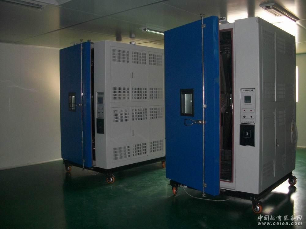 產品詳細介紹KM-PV-GDJS熱循環濕冷凍試驗箱已為多家大型太陽能電池板組件企業,研發實驗室及副品供應商采用。用于對產品、材料、零部件進行高、低溫、濕熱循環變化試驗,以評價其在一定的溫濕度條件下貯存和使用的適應性。 符合制造標準 GB10586-89濕熱試驗箱技術條件 滿足試驗方法標準 IEC 61215、IEC61730-2004、IEC 61345-1998 熱循環試驗: 光伏組件在風速不低于2m•S-1的試驗空間內,溫度在-40℃±2℃和85℃±2℃之間循環,最高溫度與最低溫度間的變化速率不超過100℃/H,且在每個極端溫度下至少保持穩定10min,每一次循環時間不超過6小時。 濕---冷(凍)試驗: 在室溫下將光伏組件放入環境試驗箱內,使其與水平面的傾角不小于5度。關閉箱門,如下圖所示完成10次循環。最高和最低溫度應在所設定值的±2℃以內,室溫以上各溫度下,相對濕度應保持在設定值的±5%R•H以內。 濕---熱試驗 在室溫下將光伏組件放入環境試驗箱內,使其與水平面的傾角不小于5度。關閉箱門,在下列嚴酷條件進行試驗: 試驗溫度:85℃±2℃ 相對濕度:85%±5% 試驗時間:1000h