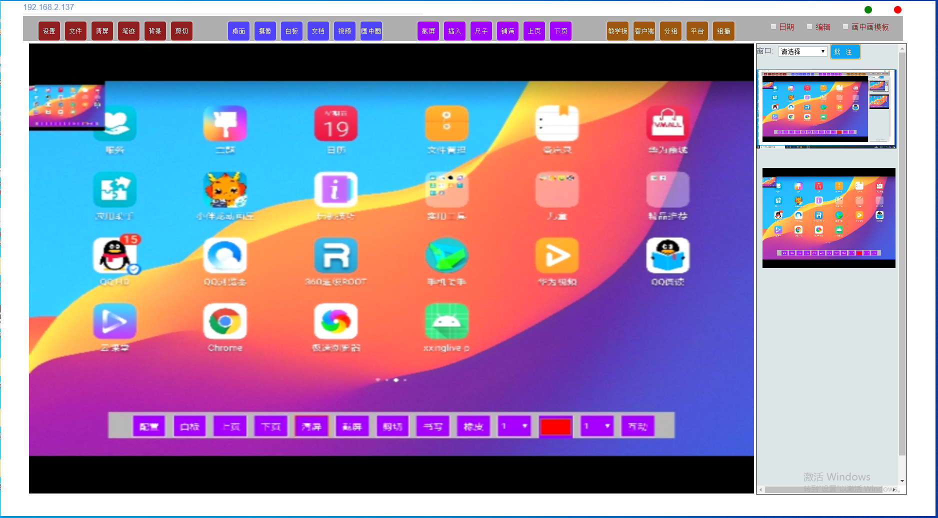 (3)互動終端安卓版 安卓6.0以上操作系統(tǒng);多點觸控,原筆跡書寫; 支持屏幕批注,屏幕截屏,剪切; 內置屏幕共享功能,無需同屏器,實現(xiàn)互動同屏; 屏幕剪切,支持任意尺寸屏幕截圖、粘貼; 屏幕批注,筆控書寫流暢、自然;支持清屏操作; 內置畫筆功能,可設置畫筆顏色、粗細以及筆速等屬性; 支持多個白板頁面書寫,無數(shù)量白板限制; 白板支持翻頁講解,上一頁、下一頁、翻頁切換等功能; 支持APP應用窗口管理;支持熱鍵操作,一鍵置頂,一鍵切換; 調取本地、云端資源,展示、批注、截屏; 隨時進行拍照,書寫、剪切,截屏保存,邊學習、邊筆記; |