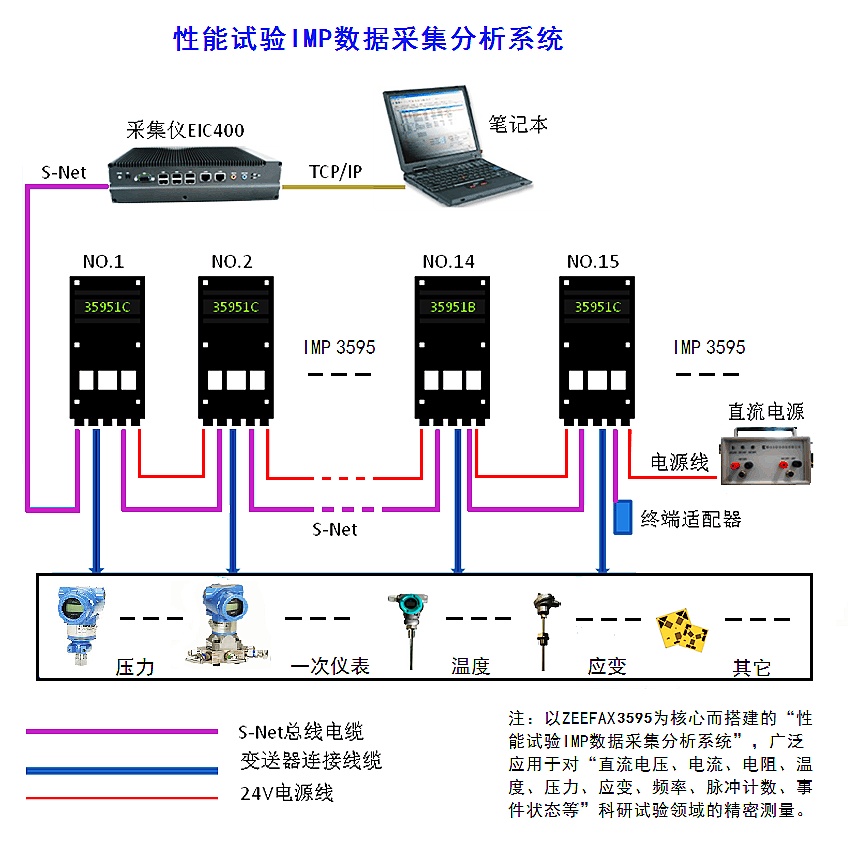 IMP3595數(shù)據(jù)采集系統(tǒng)是由3595數(shù)據(jù)采集器、數(shù)據(jù)采集儀、筆記本電腦和變送器、傳感器等現(xiàn)場一次儀表組成。 系統(tǒng)具備以下特點: 分布式測量 數(shù)據(jù)采集測量設(shè)備可設(shè)置在現(xiàn)場測點附近,降低了外部環(huán)境電磁干擾的影響; S-net網(wǎng)絡(luò)模式,現(xiàn)場接線工作十分方便,并減少了測量導線; 采用模塊化設(shè)計,組網(wǎng)簡單,擴展方便,測點靈活。 采集精度高 3595采集板采用了16位模數(shù)轉(zhuǎn)換器,具有較高的測量精度。以直流電壓測量為例,其測量范圍可以從1μV到120V,精度可達0.01%×讀數(shù)±0.01%×滿量程。 抗干擾性能 采用雙積分A/D轉(zhuǎn)換采樣技術(shù),具有硬件結(jié)構(gòu)上的抗干擾能力; 獨特的雙恒流源技術(shù),極大地消除平衡和靈敏度控制帶來的干擾; 共模抑制比大于140db、串模抑制比大于60db; 采集通道之間有承受過壓500V的能力、過載保護電壓(連續(xù))為50V。 獨特的溫度測量 3595采集板在進行溫度測量時有其獨特的優(yōu)點,可以直接接入熱電偶或熱電阻信號, 冷端溫度補償,使得溫度測量簡單方便,準確可靠,節(jié)省大量中間變送或放大環(huán)節(jié)。 方便的變送器測量 3595采集板在同時進行溫度壓力測量時,可以使用溫度變送器和壓力變送器作為傳感器儀表,這樣統(tǒng)一了現(xiàn)場布線,統(tǒng)一信號線和接口方式,每一通道可以互換,帶來很大的現(xiàn)場方便性,也就不必考慮溫度補償了。 其他方面特點 3595采集板平均無故障時間符合MIL217E標準,為106,000小時; IMP系統(tǒng)工作環(huán)境滿足IP55標準所規(guī)定的條件; 現(xiàn)場環(huán)境溫度限制(最低/最高) -20℃~85℃。 軟件特點 測試軟件基于COM架構(gòu)的設(shè)計思路、組態(tài)形式; 三層結(jié)構(gòu),保證數(shù)據(jù)安全與穩(wěn)定、實時數(shù)據(jù)查看,可與EXCEL無縫連接; 標準化的傳感器校驗信息管理與修正計算; 測量數(shù)據(jù)工程值與測量值可做實時四則運算; 虛擬測點計算量的設(shè)置支持用戶自定義公式。 |