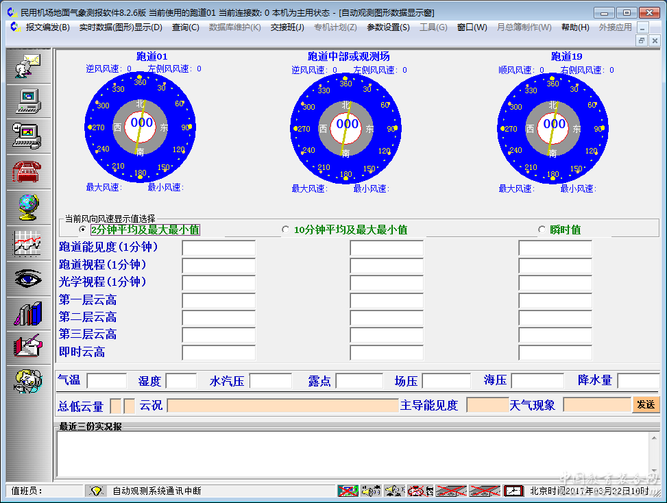 產品詳細介紹天氣觀測是機場氣象部門重要的日常業務,為了保障飛機飛行安全,氣象臺需準確、及時、連續地提供所需的天氣報告。河海民航機場地面氣象觀測發報系統是一套集自動氣象觀測系統數據采集與顯示、天氣報告編發、報文管理、地面氣象基礎資料維護、業務管理于一體的信息處理系統。系統設計完全符合《中華人民共和國民用航空行業標準》的氣候資料整編與分析規范和《國際民用航空公約附件三》的要求, 實現了報文內容驗證及到報狀態檢測,能引接維薩拉、長春等自動觀測系統發送的天氣實況數據,支持無人值守自動發AUTO實況報。