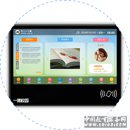 產品詳細介紹1.1產品簡介:智慧班牌是一款由本公司自主研發的多媒體班級展示平臺。它具有多種交互功能,廣泛應用于班級事務通知、班級形象展示、班級文化建設等方面。現以通過中國國家CCC質量認證,并成功推廣多家學校使用,受到廣泛好評。