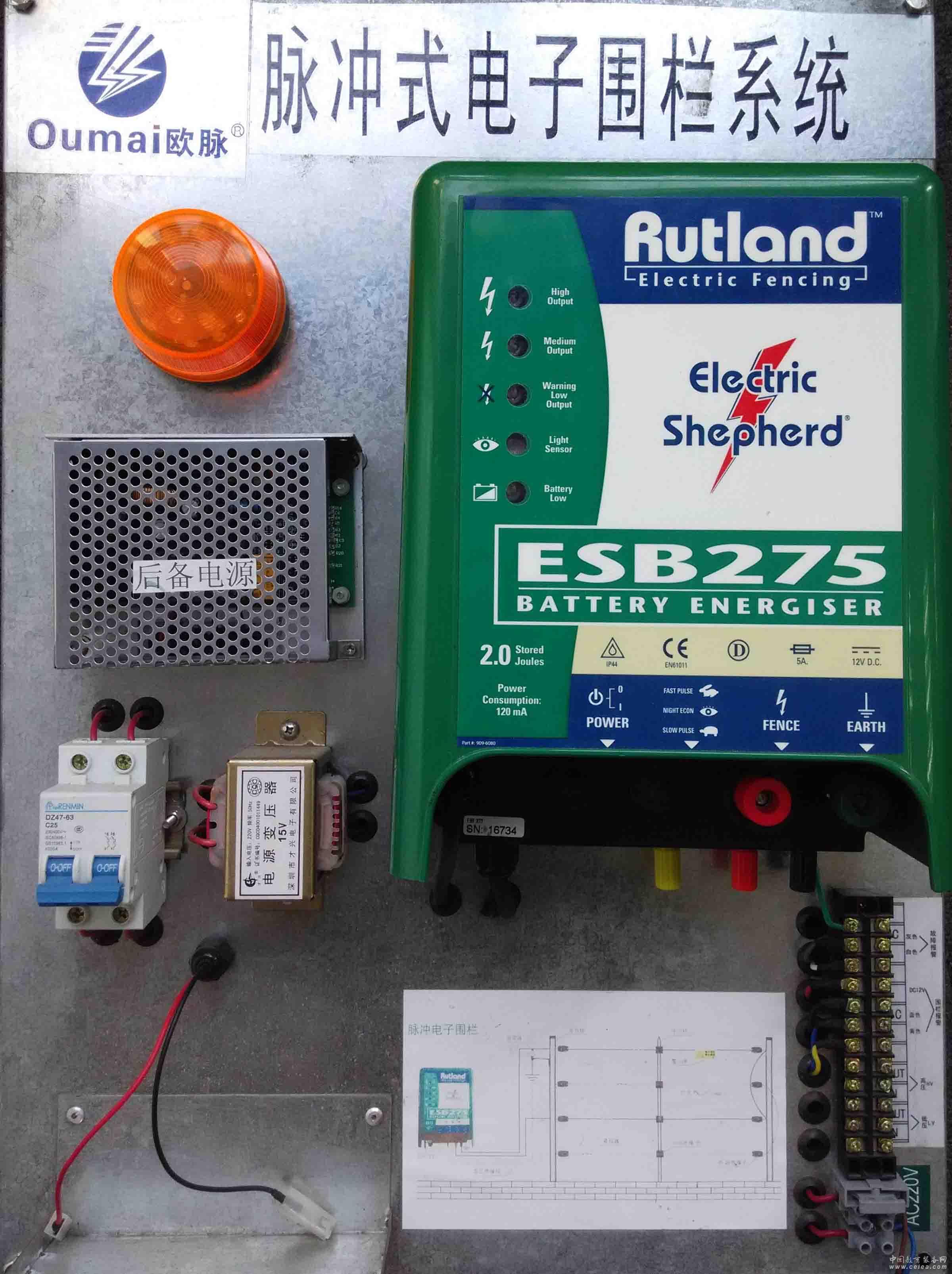 產品詳細介紹ESB275雙防區主機參數 1、防區數量:2 2、存儲能量:2.0J 3、輸出電壓: 約3000-8000V 4、脈沖間隔: 1.28S 5、脈沖持續時間:3.12MS 6、電源:12V DC 最大耗電量400mA 7、12V直流電壓,7A/h電池可提供約6小時的備用電源 8、LED運行/報警指示:脈沖指示、低于5KV報警指示、低于3KV報警指示、電壓不足指示 9、報警輸出:雙高壓回路NO、NC輸出,低壓回路NO、NC輸出,DC12v輸出;斷電NO、NC輸出 10、環境溫度:-10~+55℃ 11、外形尺寸:脈沖主機高270*210*120mm;雙防區模組:高265*185*95mm 12、重量:脈沖主機3.5kg;雙防區模組1.4kg 13、機箱標準:J650S (650mm*450mm) |