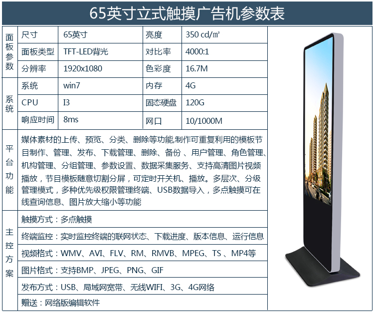 中銀(BOCT)65英寸立式分屏網絡版廣告機