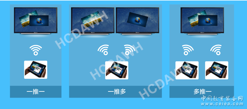 先進(jìn)多屏富媒體交互引擎,專門針對展廳多媒體互動(dòng)方案設(shè)計(jì),一個(gè)甩屏動(dòng)作完成高清圖片、視頻的特效推送,營造出震撼的視聽體驗(yàn) 無線推送、一鍵甩屏 基于無線傳輸技術(shù),多媒體文件一鍵盤甩屏推送