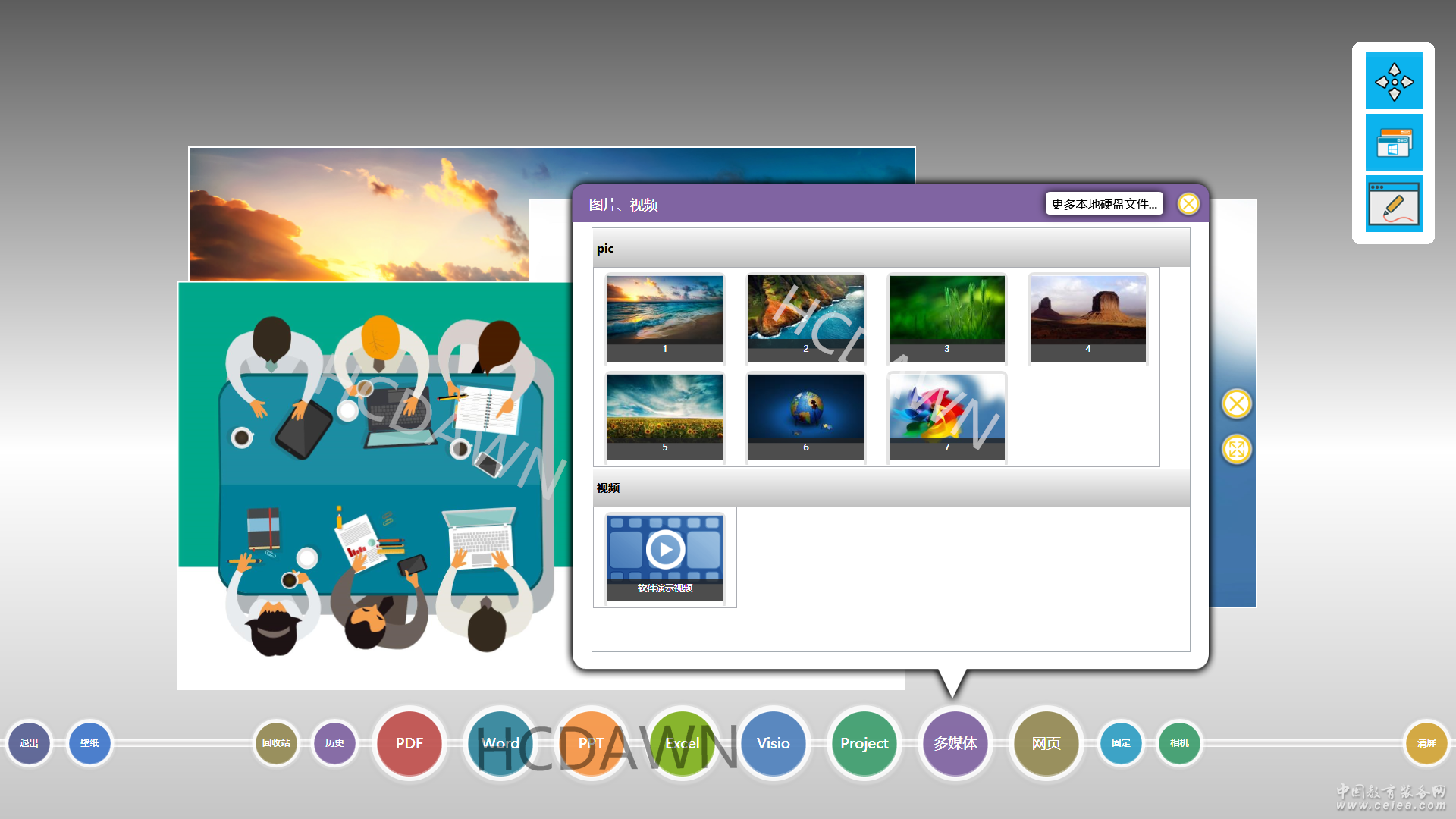 支持10類文檔解析和互動 可同時支持PPT、WORD、EXCEL、Visio、Project、PDF、高清圖片視頻、網頁、攝像頭10大多媒體內容的智能識別和互動