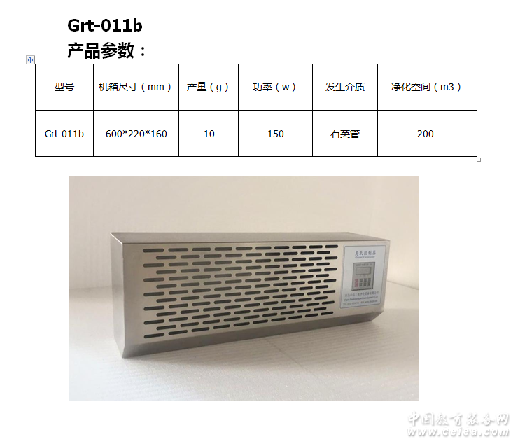型號 臭氧產(chǎn)量 臭氧濃度 功率 使用電源 機(jī)身尺寸(mm) 凈化面積 冷卻方式 氣源 Grt-910s 10g 15-30mg/L 150W 220v/50hz 600*160*220mm 200m3 風(fēng)冷 空氣 |