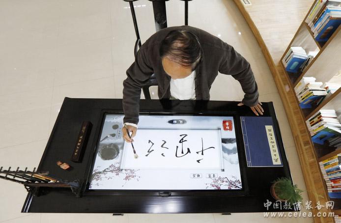 書法體驗機模擬和還原傳統書法的真實書寫環境,普通毛筆在電子屏上書寫,書寫痕跡可以實時輸入和儲存。