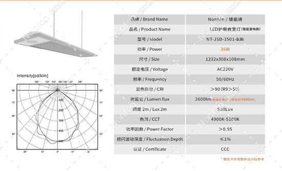 LED護眼教室燈(智能音響款)