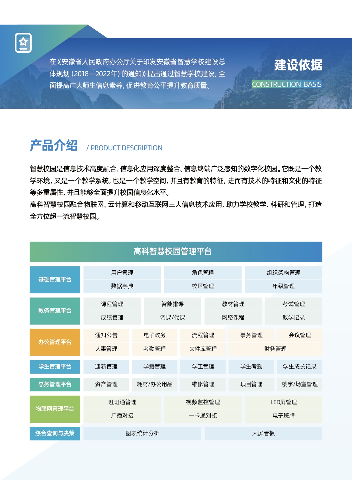 (8)、第三方系統對接:一卡通對接、短信對接、廣播對接、LED屏對接等。 智慧教育管理系統可分為公文管理、流程管理、會議管理、人事管理、資產管理、移動辦公、消息管理六個模塊。