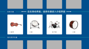 其中包含民族,西洋,現代多種樂器及自然界的聲音,都以圖片和聲音的形式展現,并配有樂器簡介及演奏技巧等文字介紹。圖文聲并茂讓學生更全面直觀的了解生活中常見及不常見的各種樂器。豐富了老師的課堂?捎糜趯W生對音樂興趣的引導和音樂初級常規型的音樂聽力訓練,加入自然界的聲音,從音樂中最基本的聲音入手教學中起到啟蒙作用。