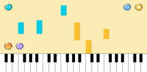 在學生欣賞過曲子之后,可以切換至跟彈功能,系統會生成簡單的曲譜,由上至下掉落方塊,學生只需要根據電子鋼琴上的指示燈來撥動琴鍵,就能發出當前曲譜的聲音。 這項功能,通過游戲的形式,大大提高了學生學習音樂的興趣,也簡化了傳統的教學模式,讓學生能在短時間內彈奏出一首曲子。