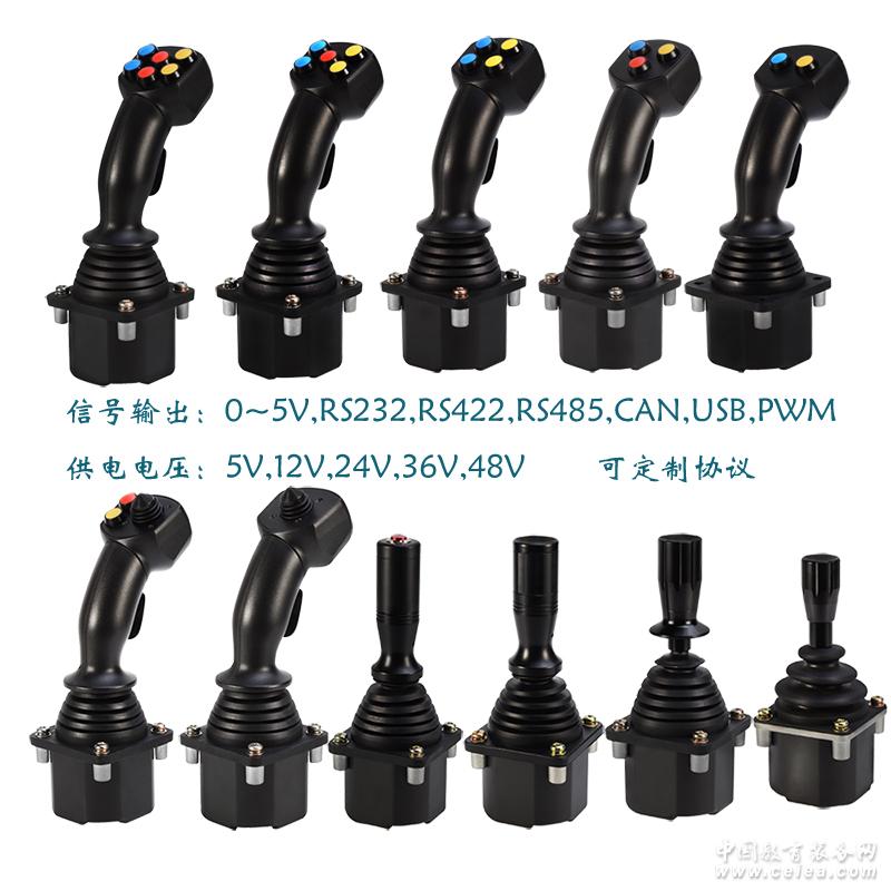 產品詳細介紹一、產品特點: 材 料: 不銹鋼+鋁合金 防 護: 面板以上部分IP66 定 位: 彈簧自動回位 操作角度: 主操縱桿±22.5度,方形界限; 按鈕開關: 1個使能開關,1-6個復位按鈕,防水按鈕; 傳 感 器: 霍爾傳感器 供 電: DC5V、DC12-36V; 功 耗: 小于32MA(模擬電壓信號輸出,單信號輸出,5V供電) 信號輸出: 模擬電壓、USB、RS422、RS232、CAN2.0B、PWM功率驅動 操作壽命: 大于500萬次; 溫 度: -40度~+70度 外形尺寸: 80X80X238 按裝尺寸: 61X61 |