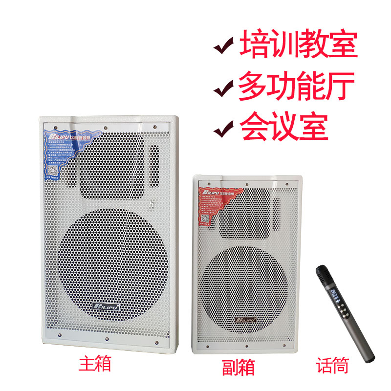 產品詳細介紹這是一款帶激光教鞭,可以PPT翻頁,紅外無線對頻,可插U盤,音量調節等等,適合多功能教室、培訓授課、報告廳、小型會議室的白色音箱。 ▲采用D類數字功放IC,前置信號放大,音頻信號處理,高功率低能耗轉換,信號自動降噪,輸出功率大、重量輕、發熱小,擴音清晰、性能穩定。 ▲1路有線話筒輸入、1路內置無線話筒、1路USB無線話筒輸入、1路音頻輸入,1路音頻輸出、1路副音箱卡龍輸出。 ▲內置藍牙接收模塊,無線播放手機存儲的音頻文件。 ▲LED顯示屏、高低調節,音量、線路獨立調節功能。 ▲據有U盤播放,上一曲下一曲選擇功能。 ▲一路70V-110V定壓有線廣播信號輸入。 ▲備有BLP環保麥克風插口、自帶6V直流電源。 ▲安裝方式:吊裝、三角架落地、手提移動。 ▲適用于多功能教室、培訓授課、報告廳、小型會議室擴音。 ▲喇叭單元:1個8寸低音,1個4寸號角高音。 ▲頻率響應:20-20KHz ▲左右聲道分離度:50dB ▲總諧波失真:0.1%/1W ▲信噪比:80db ▲輸入靈敏度:450mv ▲輸出功率:2×100W ▲開關電源寬電壓設計,交流90V-260V |