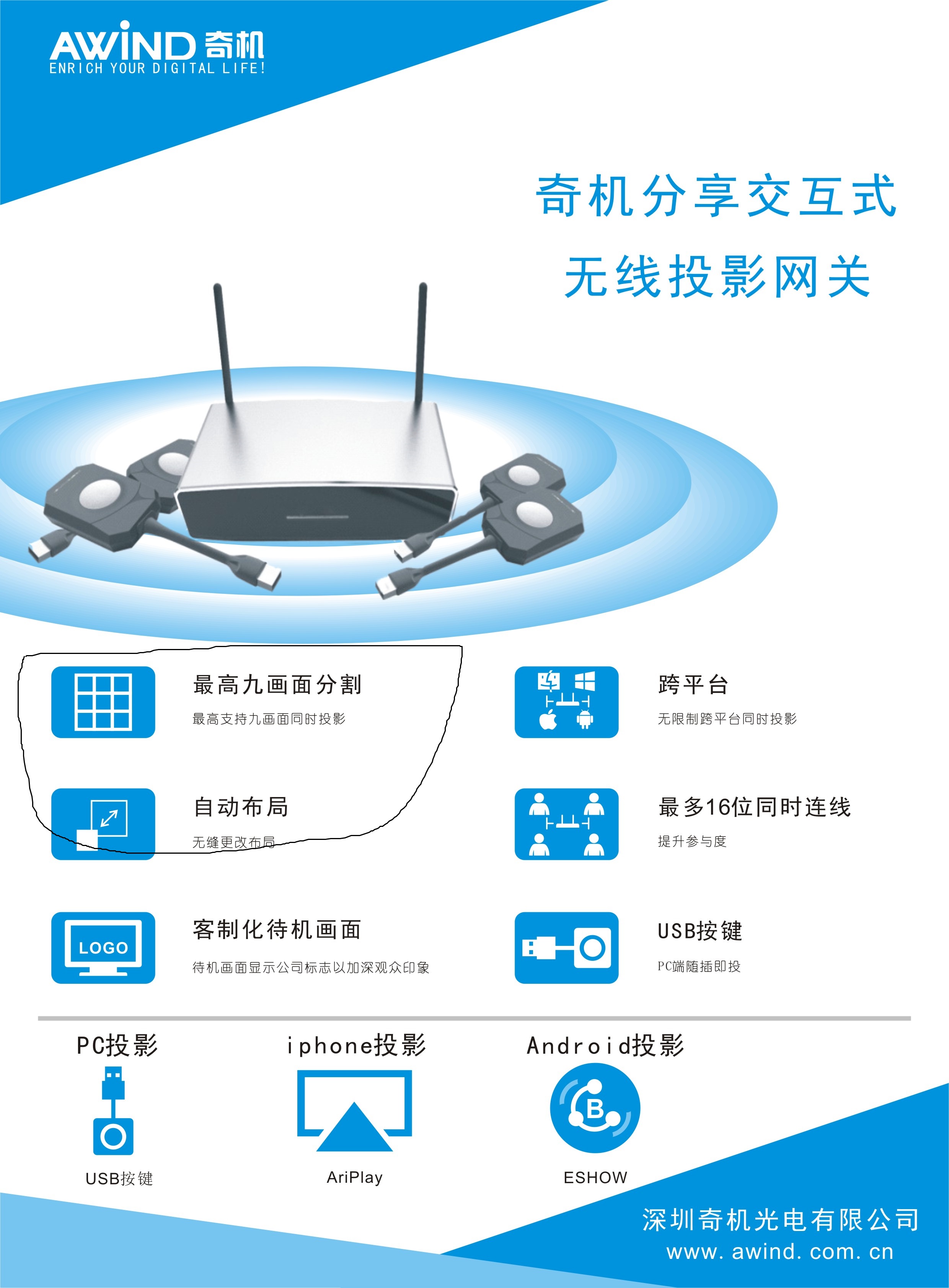 產(chǎn)品詳細(xì)介紹奇機(jī)無(wú)線會(huì)議協(xié)作A-900USB一鍵投影無(wú)線4K超清傳輸多屏互動(dòng)airplay屏幕鏡像