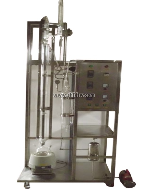 產品詳細介紹TW-GY301特殊精餾實驗裝置 裝置功能 1、熟悉精餾單元操作過程的設備與流程。 2、學習精餾塔效率的測定方法,適用于常壓、加壓和減壓精餾等特殊精餾。 主要配置 玻璃精餾塔、冷凝器、再沸器、溫度控制儀、溫度顯示儀、壓力表、流量計、真空系統、不銹鋼框架、控制屏。 公用設施 水:裝置需冷卻水,自帶和自來水管相連的接口。自來水通過裝置接口進入塔頂的冷凝器后排出。 液:裝置自帶玻璃高位槽。實驗時經流量計進入精餾塔釜。 電:電壓AC220V,功率2KW,標準單相三線制。 技術參數 1、精餾塔塔徑φ25mm,塔高1400mm,材質為玻璃塔結構,塔內填裝φ3x 3 mm不銹鋼θ網環型填料。塔釜為三口燒瓶帶導電膜保溫,保溫段加熱功率上下兩段各300W;塔釜容積:500ml;聯接方式:直磨口。 2、塔釜加熱:塔釜置于500W電熱包中。采用電壓控制器控制釜溫。 3、溫度控制及儀表: 3個數顯溫度控制儀,量程:0-150℃;溫度誤差≤2℃。 4、真空度:最高真空度可達60Pa,約0.5mmHg。 5、液體流量計范圍:1.6-16ml/min,,壓力表量程:-0.1-0.1MPa。 6、塔頂冷凝液體的回流采用擺動式回流比控制器操作。此控制系統由塔頭上擺錘、電磁鐵圈、回流比計數器等儀表組成,回流比控制范圍:99:1—1:99。 7、各項操作及溫度、回流比、流量的顯示、調節、控制全在控制屏面板進行。 8、框架為304不銹鋼材質,結構緊湊,外形美觀,流程簡單、操作方便。 9、外形尺寸:1200×500×2200mm(長×寬×高),外形為可移動式設計,帶3寸雙剎車輪。 測控組成 變量 檢測機構 顯示機構 執行機構 流量 轉子流量計 轉子流量計 手動調節 回流比 回流比繼電器 回流比控制顯示儀 回流比控制顯示儀 塔節溫度 PT100鉑電阻 數字溫度儀表 無 塔頂溫度 PT100鉑電阻 數字溫度儀表 無 塔釜溫度 PT100鉑電阻 數字溫度控制儀 固態調壓模塊 |