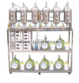 并聯不銹鋼反應器主體、風機、氣體流量計、濕式氣體流量計、塑料瓶吸收裝置、球閥、溫度顯示表、儀表控制箱、漏電保護開關、不銹鋼臺架等組成。
