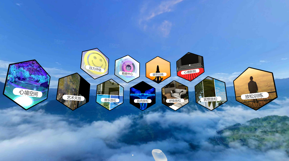 產品詳細介紹VR虛擬現實心理咨詢室系統采用最新的VR技術,綜合計算機圖形(CG)技術、計算機仿真技術、人工智能、3D立體顯示技術、人機交互技術、傳感技術、顯示技術、網絡并行處理等技術,借助高性能計算機的海量數據處理,輸出虛擬現實場景到訓練者佩戴的虛擬現實頭顯,為訓練者構建高沉浸度的虛擬現實體驗,訓練者通過與虛擬場景身臨其境的實時交互訓練,能夠提升對應激事件的耐受力,從而實現心理危機干預、特定心理能力提升的功能。 虛擬現實技術和專業心理疏導技術相結合,通過虛擬現實系統將使用者帶入預設好的心理調適環境,同時結合音樂療法,潛意識疏導,情緒互動宣泄,心理投射等多種心理疏導技巧進行心理健康調節、穩定個體情緒、協調自我生理狀態的疏導系統。本系統既能提供標準化情緒疏導流程,也能開放個性化宣泄模式,全方位的為用戶提供適宜的減壓途徑,以達到心理放松和身心健康的目的。