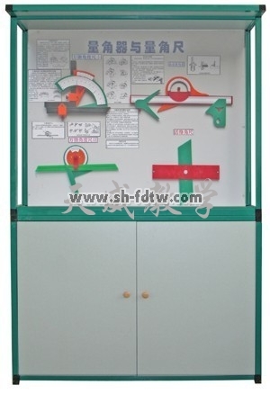 第二柜 量角器與量角尺 1 、活動量角器 2 、萬能角度尺Ⅰ 3 、萬能角度尺Ⅱ 4 、活絡角尺