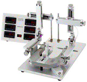 該儀器由KOPF標(biāo)準(zhǔn)堅(jiān)固“U”型臂裝配而成,“U”型臂上裝有兩個(gè)961超精確微操作臂。同時(shí)配有1770電極夾持器(帶V形夾)。 橫向與縱向滑尺被安裝在一個(gè)巨型萬用連結(jié)器上,該連結(jié)器校準(zhǔn)在“U”型臂兩翼。 |