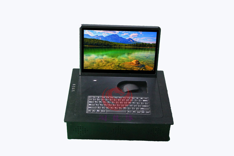 產品特點: 1: 液晶顯示器打開和閉合時,鍵盤與鼠標同時上升和下降.; 2: 屏機聯體,超薄設計,外形美觀,做工精細; 3: 采用機械防夾手設計,可手動前后調節仰角,翻轉自如,穩定性好,抗 4: 控制方式:手控,遙控,集控并支持RS232與RS485; 5: 安裝方便,操作簡單