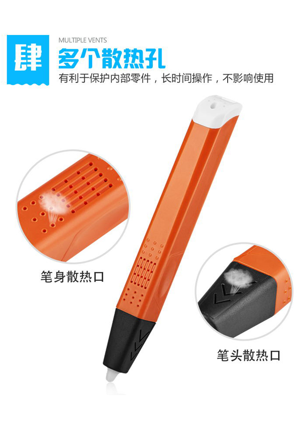 產品詳細介紹1、成型方式:三維成型; 2、工作電壓:5V/2A ; 3、吐絲速度:8檔位可調,可在使用過程中進行調節; 4、噴嘴直徑:0.7mm; 5、耗材直徑:1.75mm; 6、調溫范圍:60到245度可調; 7、吐絲速度:0-120cm/cm 8、支持PLA和ABS等多種耗材; 9、采用定制化電機,壽命持久,穩定性好,力度均勻,隨意續料(不要退出之前的耗材)。 11、支持移動電源供電,安全便捷,隨處創作,隨心所欲,激發創造力; 12、嚴密的筆頭加工工藝,杜絕堵頭(劣質耗材除外),降低客戶使用要求; 13、兼容手動和自動進料方式,能自動完成退絲并及時停止,不再會因為長時間按按鈕手酸; 14、教學使用;非常適合中小學 |