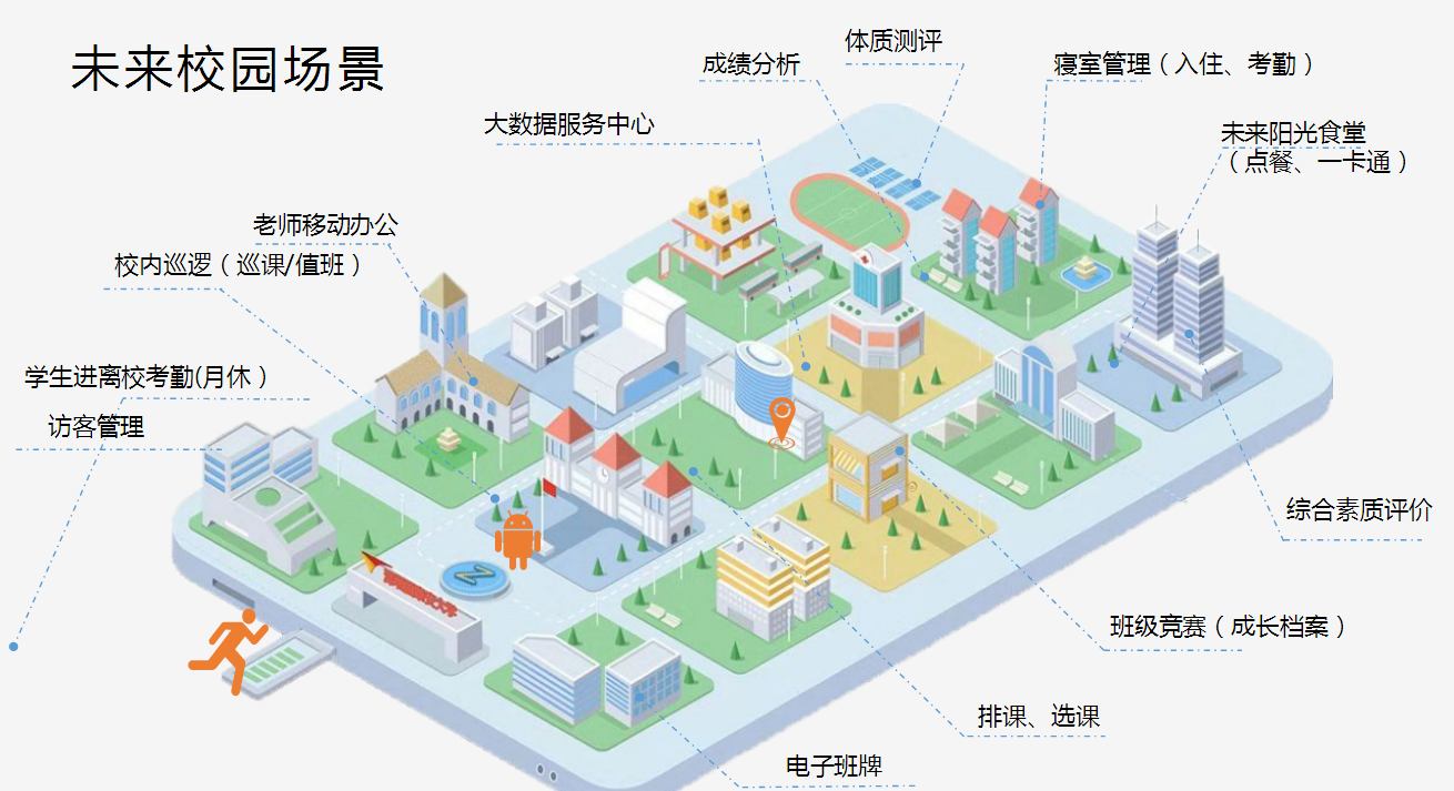 平臺價值: 統一的數據管理、用戶管理、資源管理和權限控制 全方位實現校園信息化,讓校園一切盡在掌握 加強校園管理,提高辦公效率 基礎數據靈活管理,智能查詢統計圖表 多樣化考評體系,對教職工和學生的評價更科學 多種溝通方式,實現家長、學校、老師、學生四位一體無縫對接 平臺簡單易用、易管理,可全面普及推廣 幫助校領導全面了解校園整體運營情況 為學校管理決策提供數據支持