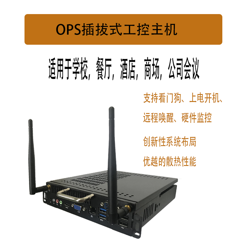 產品詳細介紹本產品是一款超薄的OPS 整機,基于 Intel 第5代Mobile U系列超低功耗平臺的 CPU,支持 WinXP、Win7、Win8、Win10 和 Linux 等操作系統; 整機采用合金材質并做陽極黑色氧化,外型小巧、超薄、結構簡單,I/O和擴展接口豐富,且配備OPS插槽,是一款為電子教育白板和會議白板量身打造的產品。 ●產品規格 主要規格 處理器 Intel 6/7 th Generation Core™ i3/i5/i7 LGA1151 內存 1* SO-DIMM 16GB DDR4內存插槽 存儲 1*Msata SSD,1*SATA標準接口 Wifi 1*WIFI Module support 802.11b/g/n+2.5db雙增益天線 視頻 Graphics Intel HD Graphics 接口 1 個 HDMI Port(最大支持分辨率: 4096x2160) 1 個 DP Port(最大支持分辨率:4096x2160) OPS 擴展槽,1 路 HDMI 信號輸出 網絡 1 個 10/100/1000Mbps 網絡接口,支持網絡喚醒 音頻 Intel HDMI HD Audio Realtek 集成6聲道音效ALC662聲卡芯片 1 × LINE-OUT & MIC-IN USB 速率 USB3.0 5Gb/s 和 USB2.0 480Mb/s (理論值) 接口和插針 主機前置4個USB3.0 Port, 2 個USB2.0 Port OPS 擴展槽,有 2 個 USB3.0 , 2 個 USB 2.0 電源接口 DC-Jack和OPS子卡供電接口,12-19v DC 電壓輸入 尺寸規格 195*180*42mm(可選30mm/40mm厚度機殼) 操作系統 Windows WinXP/Win7/Win8/Win10 其它 Unix/Linux 工作環境 溫度 -10~50℃ 濕度 0~85%RH