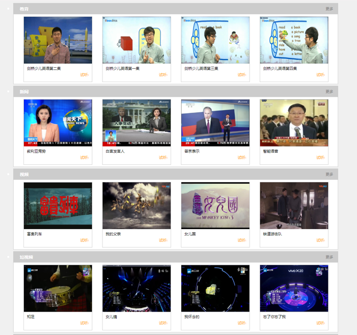 系統特點: 1.資源平臺: 包括視頻、音頻、圖片、文檔平臺化的網上資源共享和發布環境。 通過電腦、手機、IPAD等多類型終端對資源進行訪問、瀏覽、使用。 支持分類查詢,用戶可快速查詢系統中全媒體資源內容信息。 將發布的媒體通過微信、QQ等交流工具分享出去。 可以對發布媒體資源進行評論、留言、刪除以及回復等功能。 支持共享的公共資源建立和發布,支持進行資源的收藏與下載。 基于HTML5網絡服務,支持多種瀏覽器,便于用戶隨時隨地觀看媒資資源。 視頻、音頻、圖片、文本、公告等媒體資源同屏發布展示。 支持橫屏、豎屏多格式顯示。 有直播權限用戶可以開通直播頻道。 支持網上直播和手機等多平臺的直播。 公告信息自動橫屏、或豎屏滾動顯示。 支持多種模式的觸控展示功能。