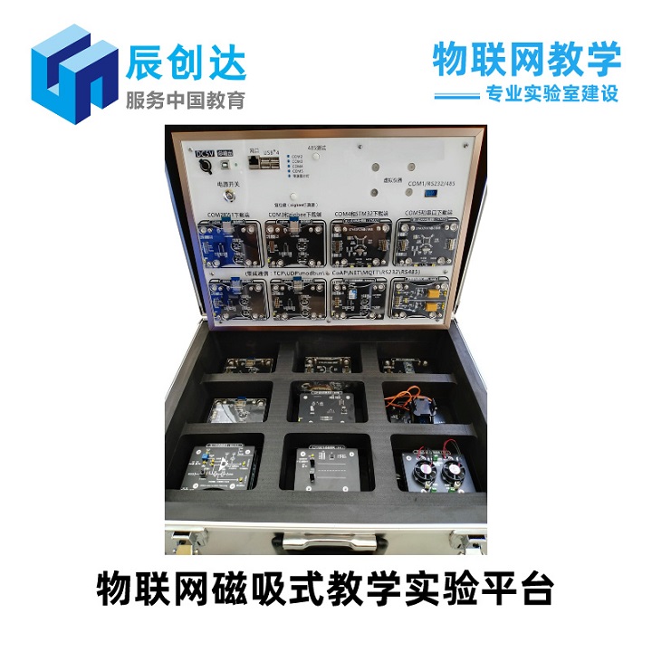 產品詳細介紹 物聯網實驗箱是一款面向電子信息、計算機及物聯網專業的教學實驗設備,主要由實驗平臺、實驗模塊、實驗軟件、云平臺、實驗開發工具及電子實訓指導書六部分組成,實驗平臺配置高性能的主板及拓展接口,并多達幾十種物聯網模塊和傳感器模塊可供選擇,模塊均采用磁吸式接口設計,直接吸附到實驗平臺對應插槽內即可使用,無需額外接線,學生可以任意搭接模塊進行實驗,完成物聯網基礎知識學習以及復雜的多模塊聯網實驗,拓展性強。 該物聯網實驗箱資源豐富,提供幾十種課程實驗,可完成51單片機技術、嵌入式系統、RFID技術、ZigBee技術、射頻識別技術、無線通訊技術、互聯網技術、傳感器技術、數據采集、無線傳感器網絡、物聯網應用程序開發、智能終端開發、電路設計、集成電路技術、電子應用技術、人工智能等諸多課程的實驗實訓,課程實驗提供開放的軟件及硬件資源,著重培養學生的實際動手能力,可實現教學、科研、學生畢業設計等相關物聯網課題。