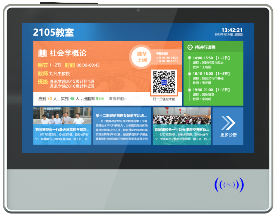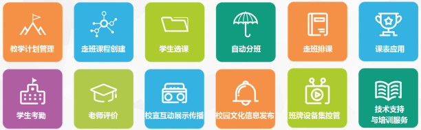 走班制班牌結合班牌硬件和軟件+服務驅動是建設特色走班教學管理平臺和特色校園文化傳播平臺,是一款走班教學需求驅動下的教學事務管理系統,走班系統內置教學計劃管理、走班課程創建、學生選課、自動分班、智能排課、課表應用、學生考勤、老師評價、班級文化、校園文化信息發布與管理、班牌設備集控管理”,用數據驅動教學管理,解決走班教改學校面臨學生選課走班排課與學生管理和教學管理的問題,打造校園文化的新視覺傳播與教學融合。