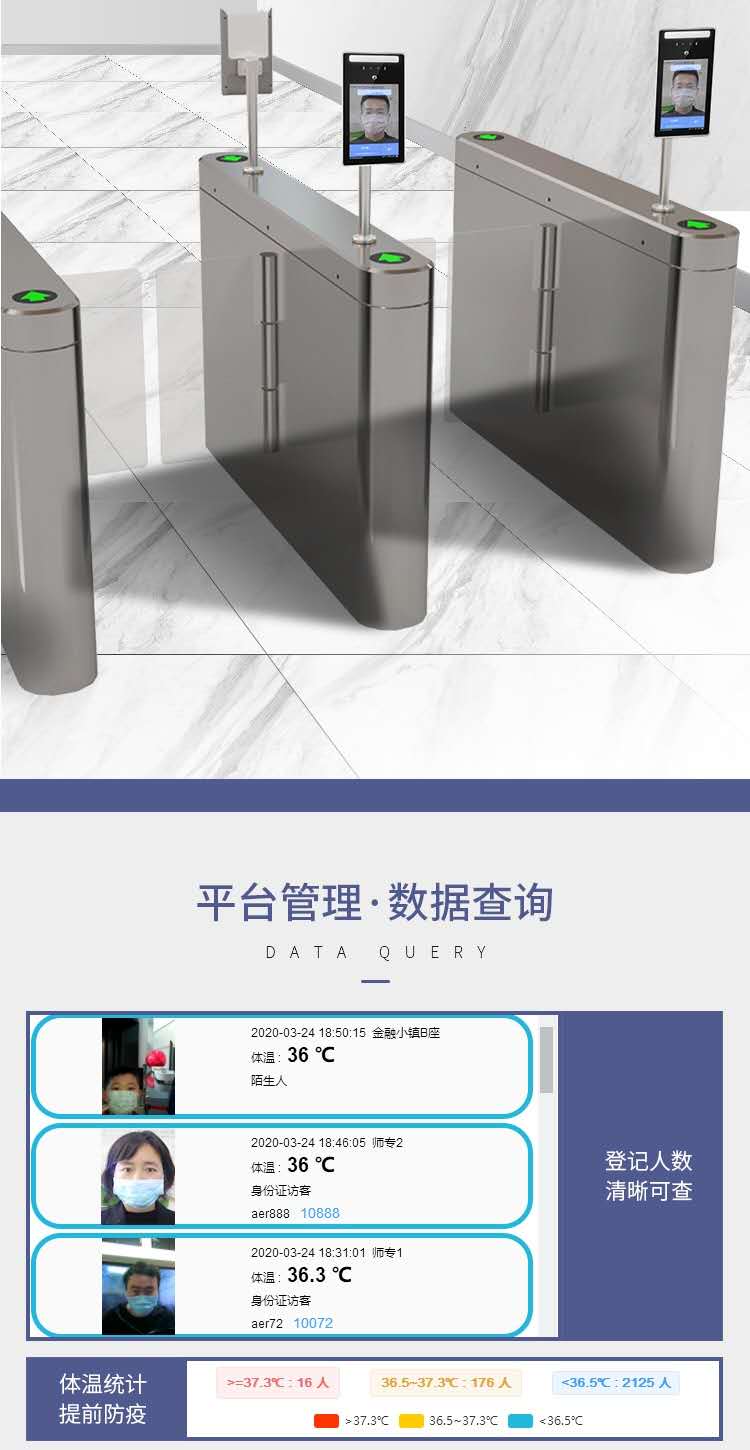 產品詳細介紹可搭配通道閘機和門禁控制,適用于公司考勤、社區門禁、基地門禁、車站安檢、工地門禁、 酒店公寓、政府機關等人臉識別場景。 采用8寸IPS全視角LCD顯示屏 工業級外觀,防水、防塵設計,穩定可靠 最高支持10萬人臉庫快速識別,支持1:1、1:N、M:N多種識別模式,實現多人同時識別檢測。 采用寬動態雙目攝像頭,防偽算法,夜間紅外活體檢測,雙補光LED燈,適合各種復雜光線環 境,可在戶外強光環境使用。 采用Rockchip六核64位”服務器級”處理器RK3399,主頻高達1.8GHz(雙核Cortex-A72+四核 Cortex-A53),支持多格式視頻編解碼,處理性能更出色。 支持身份證識別器、 二維碼掃碼器、IC刷卡器、測溫模塊、指紋識別器、雷達距離感應、高 靈敏電容咪、 4G/3G LTE模塊、光感模塊等多種外部設備擴展。 支持Android、Ubuntu多個操作系統,性能穩定可靠。 配套完善的人臉識別程序(APK)、PC端后臺管理軟件、手機管理軟件(微信小程序),搭配整 機,可直接應用于項目中。 開放配套的SDK二次開發源代碼、人臉識別API、開發教程、開發工具等資料,滿足用戶自行開 發的需求 |