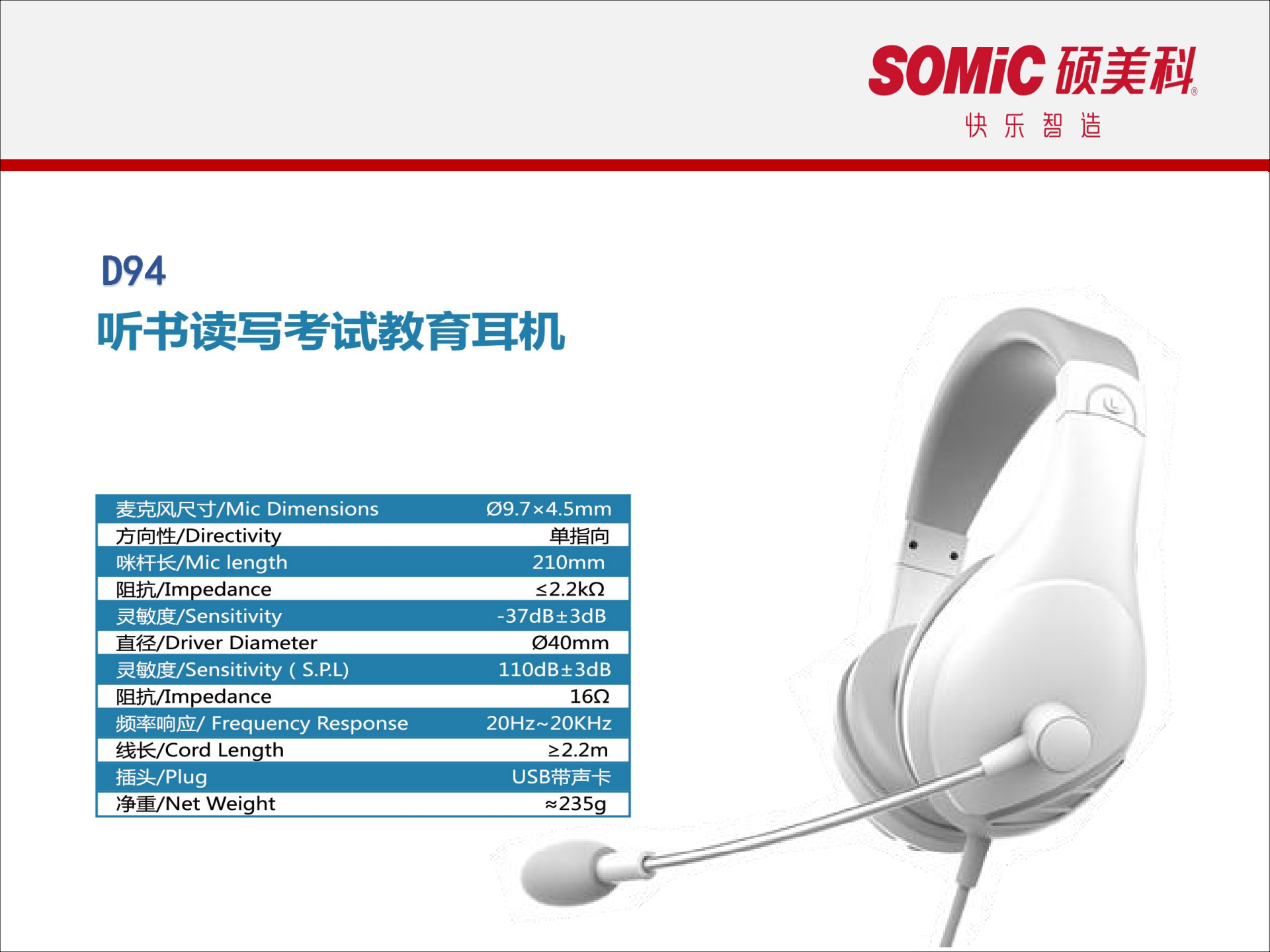 產(chǎn)品詳細(xì)介紹碩美科D97環(huán)境降噪教育考試耳機 1.ENC環(huán)境降噪技術(shù),抑制環(huán)境噪聲拾音更清晰。 2.聽說訓(xùn)練和考試中,徹底解決噪聲影響。 3.高效屏蔽麥克風(fēng),抗干擾,拾音清晰。 4.旋轉(zhuǎn)式鵝形管長咪桿,柔軟性強,可自由彎曲,旋轉(zhuǎn)調(diào)控。 5.綠色咪頭錄音標(biāo)識,錄音/通話暢通無阻。 6.高性能驅(qū)動單元,音質(zhì)干凈清澈。 7.可拆換大面積耳罩,完善被動隔音降噪。 8.USB免驅(qū)動帶聲卡插頭。