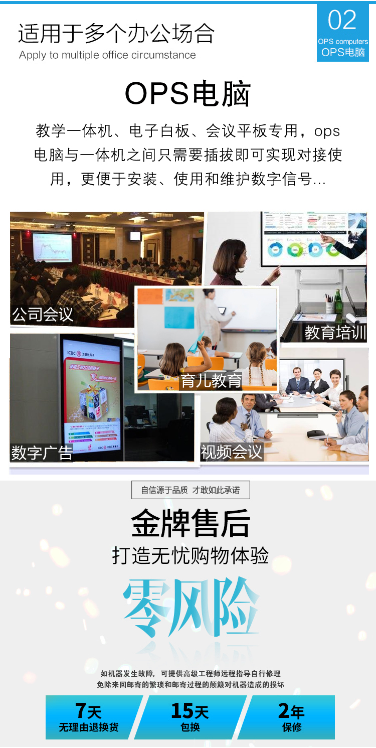 產品詳細介紹適配各大主流品牌觸控大屏,智能交互平板、智能會議平板、電子白板、智能交互黑板。80針 intel標準定義接口,專注各種主流參數配置與及OPS定制化服務為一體。性能穩定,產品質保1-6年。