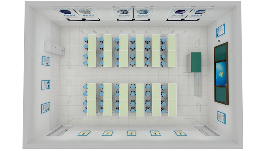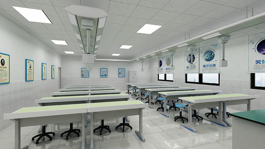 引入國(guó)際先進(jìn)理念,革新傳統(tǒng)實(shí)驗(yàn)室建設(shè)施工過程,徹底消除管線鋪設(shè)繁多、教室地面被破壞,不同學(xué)科實(shí)驗(yàn)室對(duì)樓層要求嚴(yán)格等弊端,施工方式從地面(隱蔽)走向頂部(開放),充分解放教室地面,為教室承載更多功能提供可能。