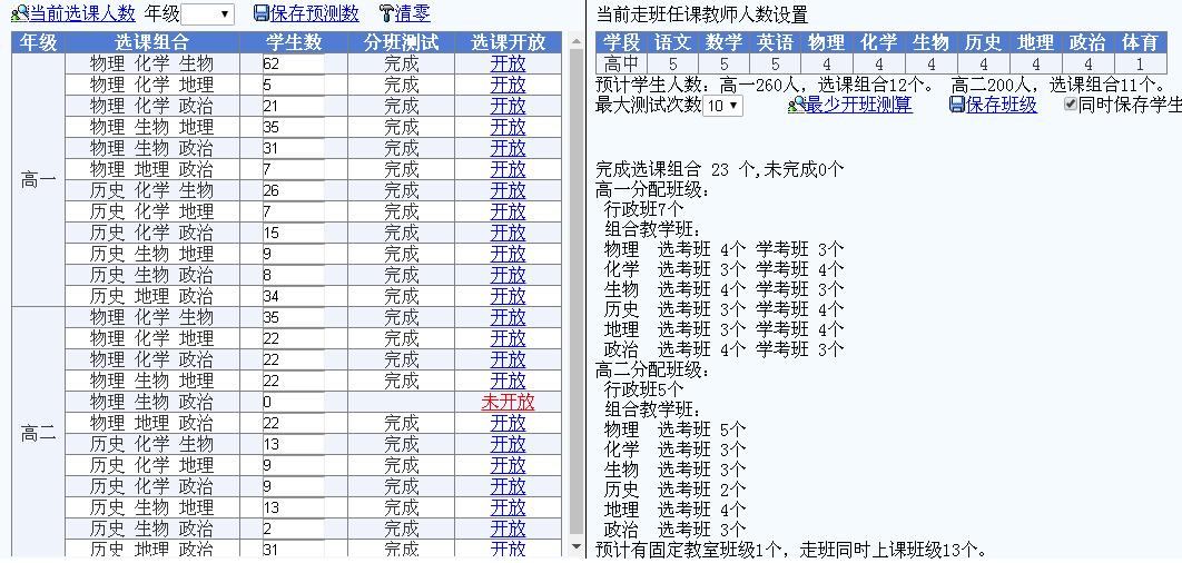 資源分析:根據(jù)學校現(xiàn)有的教師資源和教學場地資源,預測能夠接納的學生選課結(jié)果,做到心中有數(shù)。 (為了幫助即將進入新高考或已進入新高考的學校了解自己所在學校的教學資源對學生選課走班的支持度,我公司特別開發(fā)了“走班分班測算工具”,此工具可為用戶提供免費的分班測算) 宣傳動員:對學生進行選課前的宣傳工作,目標是在充分尊重學生選課意愿的前提下,給予學生適當?shù)闹笇А_@也是學生生涯規(guī)劃的重要組成部分。 學生選課:學生完成選課操作并匯總選課數(shù)據(jù)。 分班:對學生和任課教師進行分配,目標是要保證分班的結(jié)果一定能夠進行排課。 排課:考慮了學校的一些特殊情況后,完成課程表的編制。 三、99走班排課系統(tǒng)特點