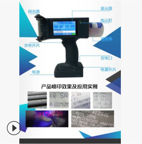 產品詳細介紹噴頭:16點陣 噴印高度:25-60MM 軟件功能:實時日期時鐘打印批次,記數 班次 字體左右翻轉,噴印行數:1-2行 重量:1.6KG(墨水+機身+電池) 噴印點陣:16X10 14X10 12X8 7X5 噴印圖形:可噴印商標圖形,符號等 狀態顯示:打印時預覽信息 觸發方式:光電感應器 墨水顏色:黑 紅 蘭 黃 白可選 充電時間:不大于5小時 使用油墨:水性或油性