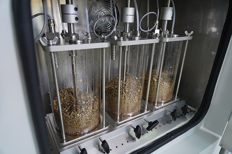 測試原理 塑料生物降解測試儀測試系統模擬的強烈需氧堆肥條件下,測定試驗材料最終需氧生物分解能力和崩解程度。 試驗材料與接種物混合,導入靜態堆肥容器。 在該容器中,混合物在歸檔的溫度、水、礦物無機鹽及新的生物質都是最終生物分解的產物。在試驗中連續檢測、定期測量試驗容器和空白容器產生的二氧化碳,累計產生的二氧化碳量。試驗材料在試驗中實際產生的二氧化碳量與該材料可以產生的二氧化碳理論量之比為生物分解百分率。 根據實際測量的總有機碳(TOC)含量可以計算出二氧化碳的理論釋放量。生物分解百分率不包括轉化為新的細胞生物質的碳量,因為它在試驗周期內不代謝為二氧化碳。 此外,在試驗結束時可以確定試驗材料的崩解程度,也可以測定試驗材料的質量損失。