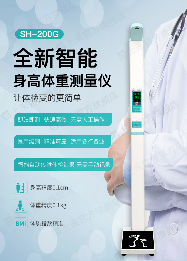 產品詳細介紹超聲波無接觸測量身高、潔凈、衛生,測量速度快,測量精度高 數據輸出格式:1,提供RS232接口和WiFi接口,方便用戶接入醫院系統或遠程健康系統,測量結果可以發送到手機,并提供健康建議,方便用戶關注體重對健康的影響; 2,并提供測量數據和微信公眾號的綁定,居民在通過手機獲取測量數據的同時關注醫療單位公眾號,方便醫療單位健康知識的宣傳和衛生政策的傳達; 體型:自動計算BMI指數,并判斷BMI指數范圍; 體重測量方式:精密平衡梁電阻應變式壓力傳感器稱重; 身高測量方式:采用高精度超聲波傳感器并實現溫度補償功能; 測高范圍:20-210cm, 鑒定精度:±0.5cm 分度值:0.5cm或0.1cm可調; 稱重范圍:2.0-500KG,鑒定精度:±0.1kg 分度值:0.1kg或0.01kg可調; 測重傳感器:高精度度、高靈敏、高性能精密平衡梁式壓力傳感器; BMI測量:正常范圍19-25 自動計算BMI數值,BMI范圍可以根據需求進行調整; 方便移動:整機高度:230CM 折疊后:120CM 機身可折疊,用料精致,攜帶方便; LCD顯示:采用7寸高清彩色液晶屏,超大字體,醒目清晰顯示,日期時間溫度,與網絡同步,時間準確,顯示體型體型偏胖、正常、偏瘦; 自動語音播報:清晰語音報出測量數值并且客戶可以根據使用情況設置提示語音例如:歡迎光臨 輸出:提供RS232接口和WiFi接口,可根據客戶需求選配無線藍牙2.0/4.0,4G模塊,RJ45網口云接口等,方便用戶接入醫院系統或遠程健康系統,測量結果可以發送到手機,并提供健康建議,方便用戶關注體重對健康的影響 數據存儲:可存儲100萬條以上數據,并支持U盤導出; 測量速度:快速精準測量600次/小時; 多媒體廣告屏:采用7寸彩色高清液晶屏及安卓4.4以上操作系統,液晶屏上可以設置顯示使用單位名稱,例如:某某衛計委祝您健康。自動循環播放視頻音頻及圖片宣傳健康知識或衛生醫療政策,使用單位可以自己更換宣傳片,非常方便; 電源:采用AC100V-240V/12V直流電源,輸入寬電壓適合電壓不穩定地區; 消耗功率:待機10W,工作時平均15W; 工作環境:溫度-10℃至+40℃ 濕度:20%-85%PH; 推薦使用:醫院、疾控中心、學校、藥房、商場/超市、公安系統、健身房等部門單位 可選配、可定制,支持連鎖機構、健康一體機配套方案等; |