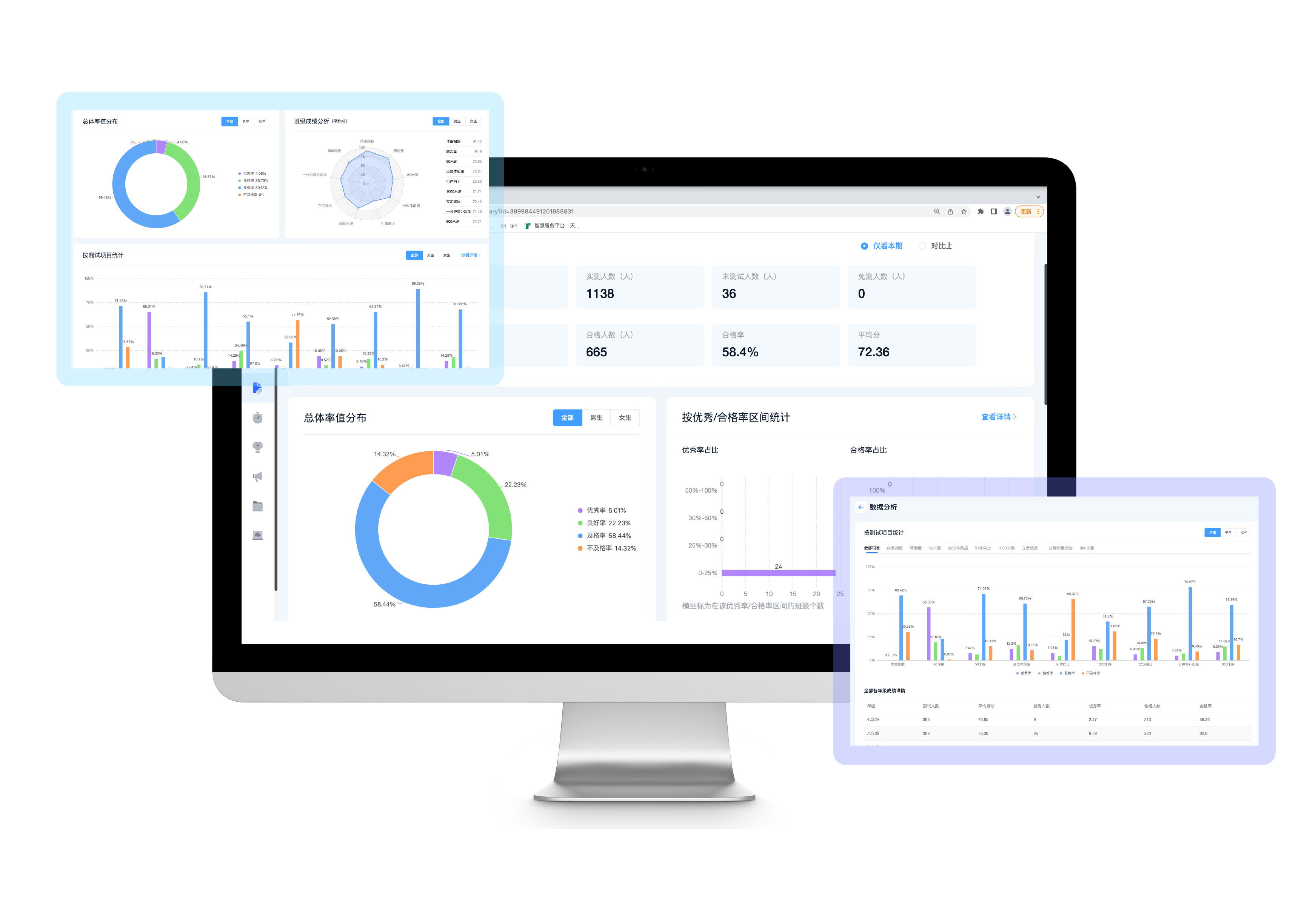 三、產品功能 1)導入體測數據 老師需導入學生的體測數據(注:體測數據僅用于體智云后臺的智能分析,絕不會泄露)支持一鍵導入Excel表,后臺智能整理。 2)生成體測分析報告 體智云智能自動生成分析報告,整體分析,按年級的分析,按班級的分析,按運動項目的分析……數據概況一目了然。 3)生成運動處方和訓練計劃 根據智能分析的結果,生成個性化運動處方和訓練計劃,針對性的提高學生體測成績。