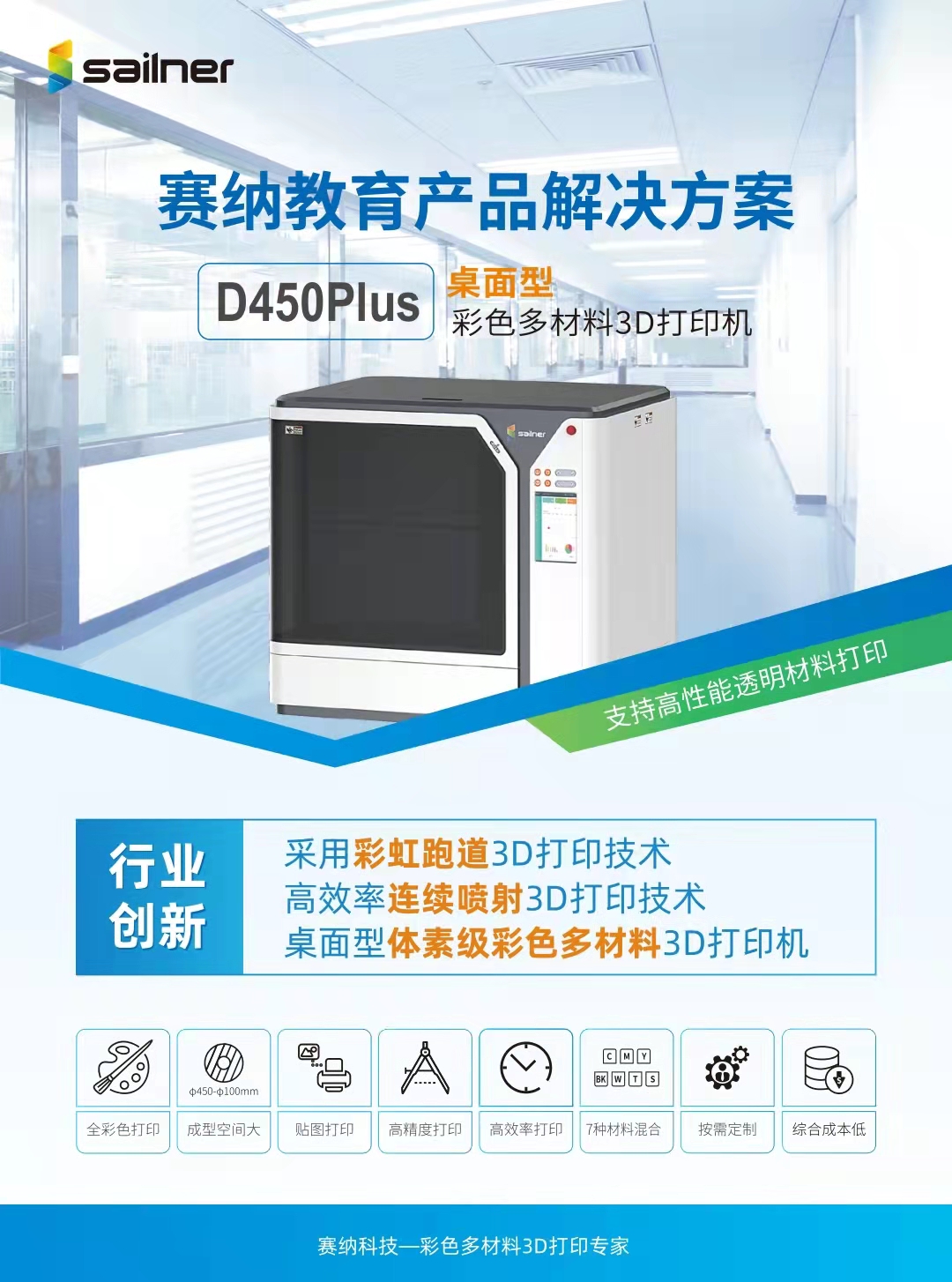 產品詳細介紹該設備采用了賽納科技自主研發的WJP(White Jet Process)白墨填充技術,WJP技術是一種微滴噴射式多材料復合3D打印系統,其基礎原理類似于噴墨打印技術,每噴射打印出一個薄層的光敏樹脂后即用紫外光快速固化,每打印完成一層,機器成型托盤便極為精確的下降一層,而噴頭持續工作,直到完成。 該設備基于彩色噴墨原理,實現了全彩色及透明打印效果的完美呈現,自主創新研發了打印補償墨滴技術,通過添加白墨滴,實現了全彩色打印功能對墨滴厚度、精度、平整度和色彩的要求。 WJP聚合物噴射系統由于使用多通道噴頭設計,可以實現不同顏色和不同材料的復合打印。相比傳統3D打印技術,WJP技術可以使用多噴頭、多通道數千個噴孔來按需噴射材料,實現全彩色、多材料、軟硬結合的數字復合打印。 1.成型原理:液態微滴噴射式彩色多材料3D成型工藝 2.噴頭數量:≥2個高精度壓電噴頭; 3.打印通道:≥8通道; 4.噴孔數量:>2500個; 5.成型平臺:旋轉式成型平臺; 7.打印層厚模式:可選18μm、36μm; 8.打印效果:全彩色打印、貼圖打印、漸變色打印、半透明 、全透明、數字混合排版打印; |