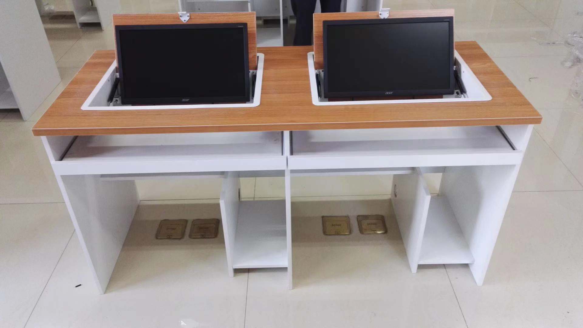 隱藏式翻轉(zhuǎn)電腦桌學(xué)生電教室機(jī)房培訓(xùn)桌