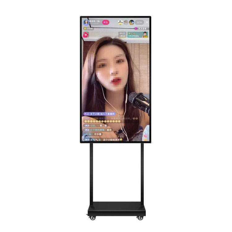 尺寸:32-43-50-55寸 直播大屏:手機直播因為距離過遠,需要頻繁低頭看面前的小手機,使直播體驗感不好,直播機可以清晰展示粉絲互動留言,還可以題詞,播放直播腳本信息等,提高了直播效率,粉絲互動性。 高清大屏,分辨率高清1920*1080,色彩絢麗,播放清晰流暢。 橫屏豎屏,隨意切換顯示,搭配移動支架,方便移動。 多臺手機同步投屏,支持無線有線。 直播培訓(xùn),內(nèi)置白板軟件,隨意書寫批注。 豐富接口,擴展功能。 支持抖音,快手,虎牙多平臺直播。 機器邊框采用金屬拉絲工藝,4mm鋼化玻璃防刮防爆屏。 支持app,應(yīng)用各種應(yīng)用下載 使用場景:帶貨直播,游戲直播,網(wǎng)課直播,才藝直播,駕考培訓(xùn)直等。