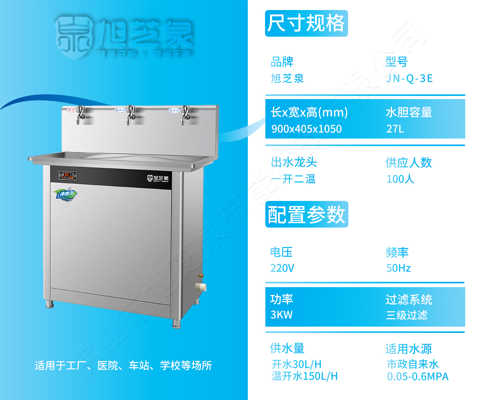 產品詳細介紹1、安全衛生。 微電腦時控,不需專人管理。自來水經多級過濾,高溫消毒后再降溫,所有管道全封閉,徹底杜絕二次污染,且加溫過程氧分不會流失,避免飲用千沸水,飲用此水衛生有保證,有利于員工的身體健康。另有五重安全保護,確保員工使用之安全。 2、省電節能。 本機采用超高效熱交換節能器,使燒開后的水熱能被徹底的回收而降溫,節省大量的電能電費與時間。同樣的時間內用最少的電量,供應更多的飲用溫開水。 3、方便、實用。 本機打開龍頭即有開水與溫開水飲用,自動進水,無加水、等水之麻煩,實現全自動無人管理。夏天水不熱,冬天水不涼,出水溫度可調。 4、豪華美觀,高貴氣質。 整機全不銹鋼制造,永不銹蝕。整體美感好,可從側面提升管理檔次及整體形象。 5、優質的產品與完善的售前售后服務,多年專業經驗,穩定的客戶群。 接工程投標項目 18928637701(微信同號) |
